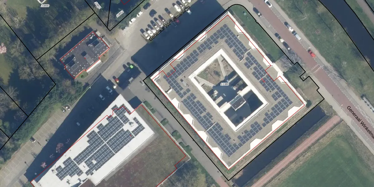 Het perceel waarop Generaal Winkelmanlaan 52 staat heeft een oppervlakte van 4718 m². Dit is een zeer groot perceel. De perceeloppervlakte wordt geregistreerd door het Kadaster. Gedetailleerde informatie over de maten van dit perceel kunt u vinden in het rapport Kadastrale kaart met maatvoering van Generaal Winkelmanlaan 52.