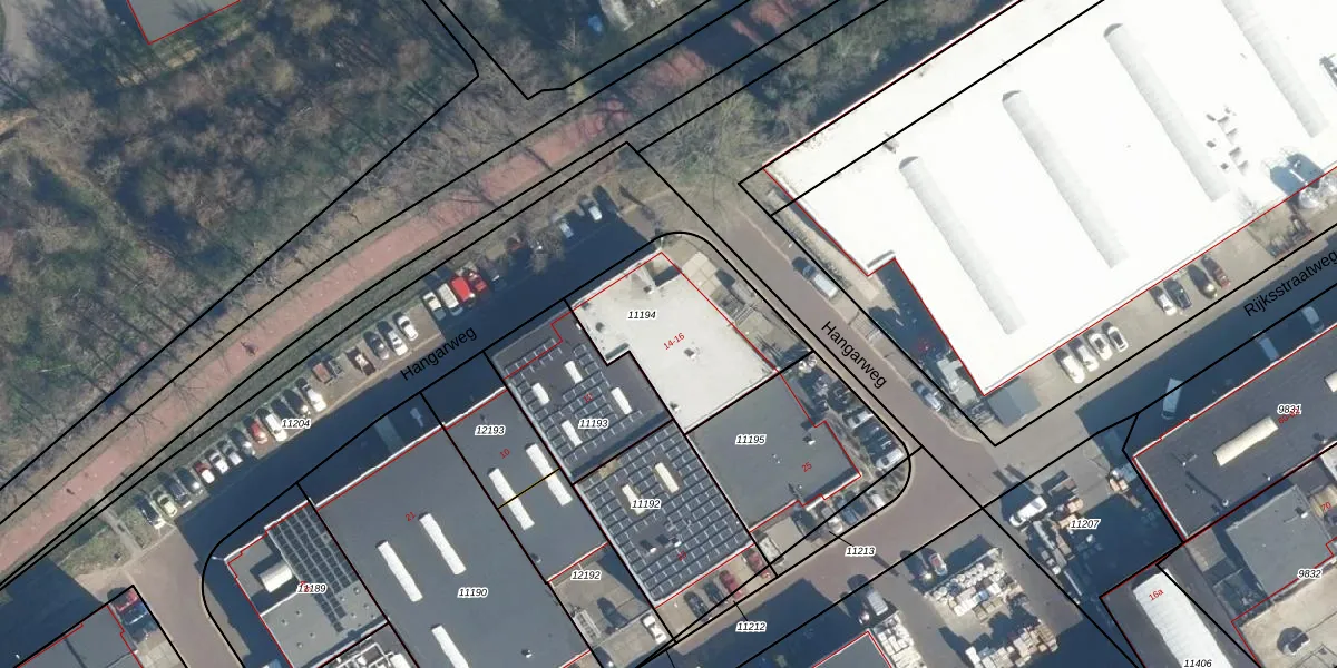 Het perceel waarop Hangarweg 14 staat heeft een oppervlakte van 594 m². Dit is een groot perceel. De perceeloppervlakte wordt geregistreerd door het Kadaster. Gedetailleerde informatie over de maten van dit perceel kunt u vinden in het rapport Kadastrale kaart met maatvoering van Hangarweg 14.
