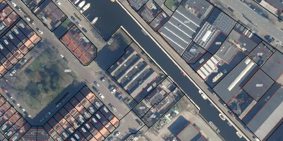 Het perceel waarop Haven 41 staat heeft een oppervlakte van 948 m². Dit is een groot perceel. De perceeloppervlakte wordt geregistreerd door het Kadaster. Gedetailleerde informatie over de maten van dit perceel kunt u vinden in het rapport Kadastrale kaart met maatvoering van Haven 41.