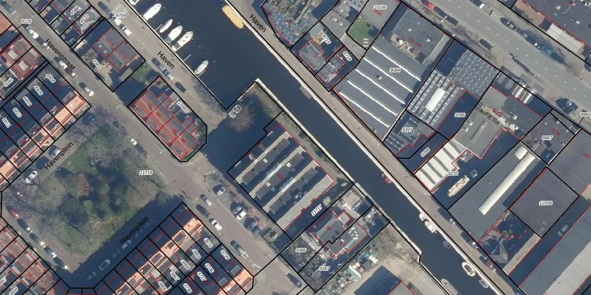 Het perceel waarop Haven 55 staat heeft een oppervlakte van 948 m². Dit is een groot perceel. De perceeloppervlakte wordt geregistreerd door het Kadaster. Gedetailleerde informatie over de maten van dit perceel kunt u vinden in het rapport Kadastrale kaart met maatvoering van Haven 55.