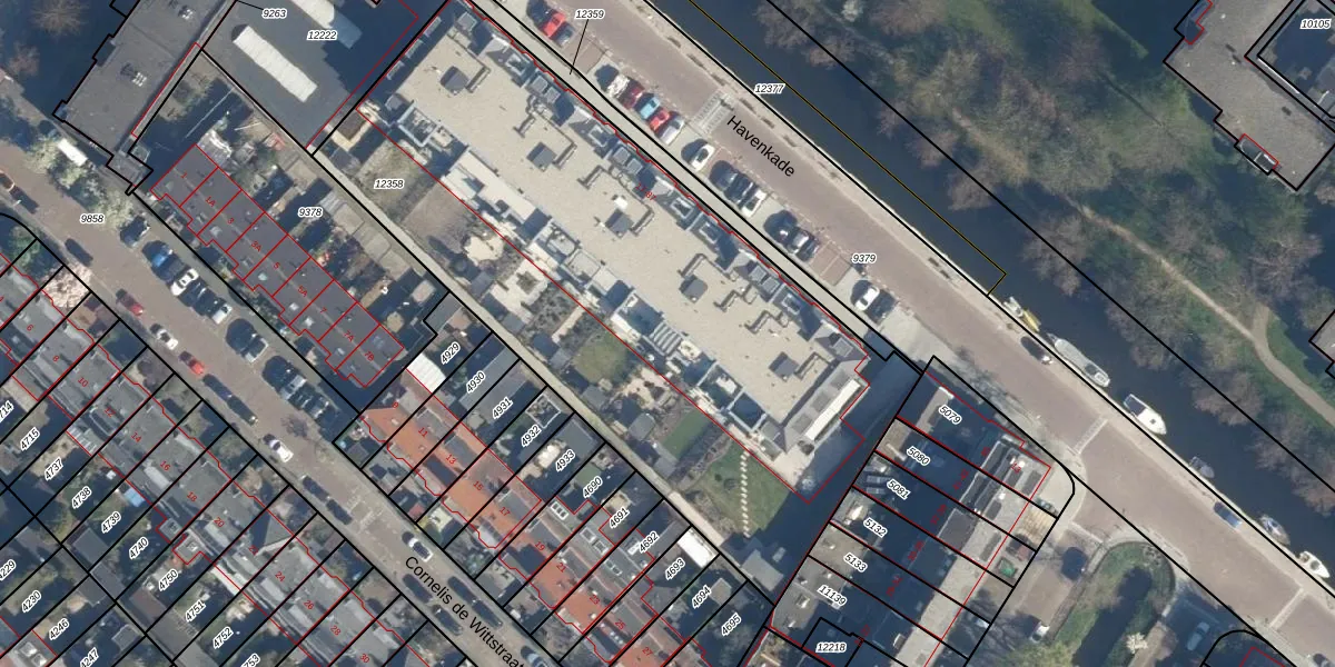 Het perceel waarop Havenkade 39 staat heeft een oppervlakte van 3386 m². Dit is een zeer groot perceel. De perceeloppervlakte wordt geregistreerd door het Kadaster. Gedetailleerde informatie over de maten van dit perceel kunt u vinden in het rapport Kadastrale kaart met maatvoering van Havenkade 39.
