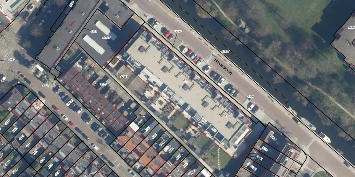Het perceel waarop Havenkade 55 staat heeft een oppervlakte van 3386 m². Dit is een zeer groot perceel. De perceeloppervlakte wordt geregistreerd door het Kadaster. Gedetailleerde informatie over de maten van dit perceel kunt u vinden in het rapport Kadastrale kaart met maatvoering van Havenkade 55.