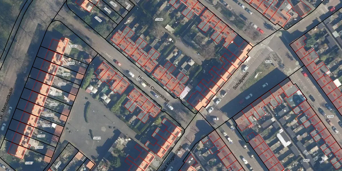 Het perceel waarop Herman Costerstraat 4 staat heeft een oppervlakte van 4479 m². Dit is een zeer groot perceel. De perceeloppervlakte wordt geregistreerd door het Kadaster. Gedetailleerde informatie over de maten van dit perceel kunt u vinden in het rapport Kadastrale kaart met maatvoering van Herman Costerstraat 4.