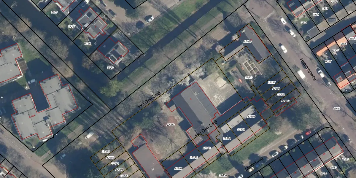Het perceel waarop Hof Den Deijl 22 staat heeft een oppervlakte van 2561 m². Dit is een zeer groot perceel. De perceeloppervlakte wordt geregistreerd door het Kadaster. Gedetailleerde informatie over de maten van dit perceel kunt u vinden in het rapport Kadastrale kaart met maatvoering van Hof Den Deijl 22.