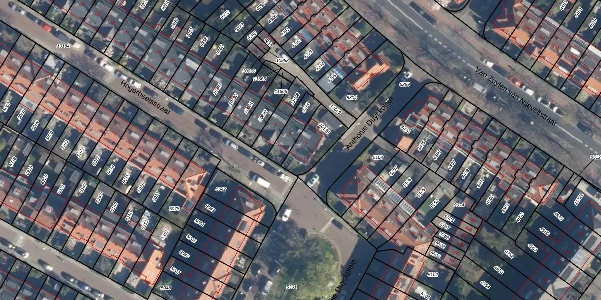 Gebruik de zoekbalk of klik op een perceel voor informatie over de adressen binnen dit perceel.