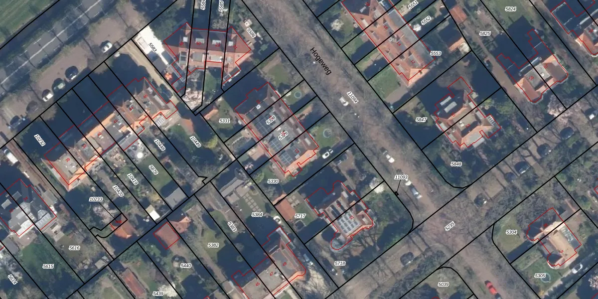 Het perceel waarop Hogeweg 13 staat heeft een oppervlakte van 450 m². Dit is een groot perceel. De perceeloppervlakte wordt geregistreerd door het Kadaster. Gedetailleerde informatie over de maten van dit perceel kunt u vinden in het rapport Kadastrale kaart met maatvoering van Hogeweg 13.