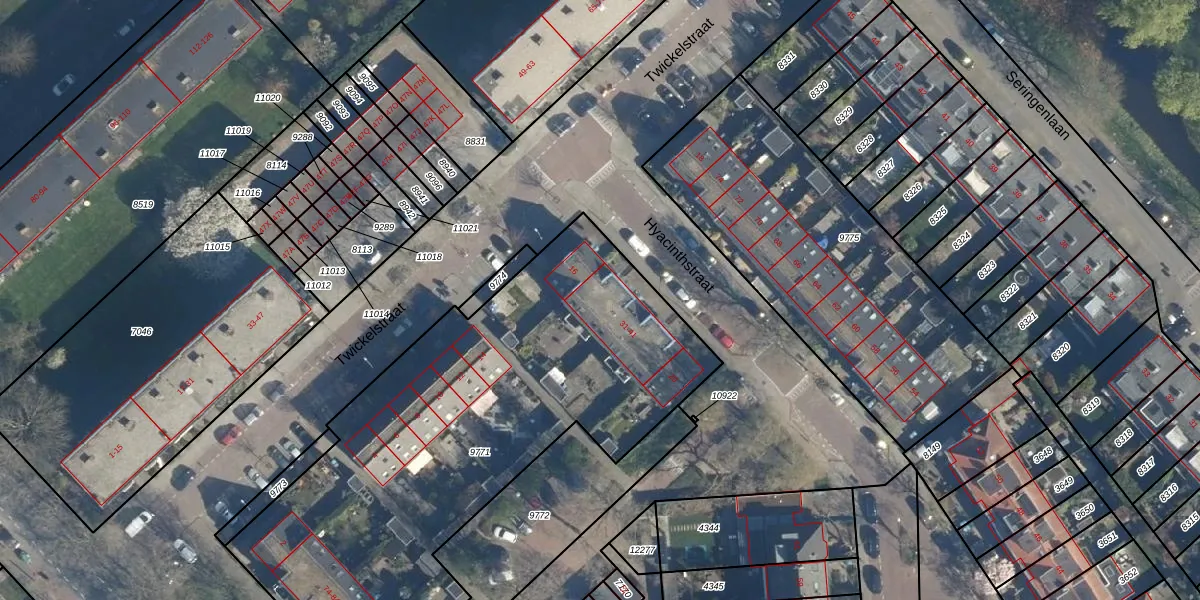 Het perceel waarop Hyacinthstraat 39 staat heeft een oppervlakte van 2561 m². Dit is een zeer groot perceel. De perceeloppervlakte wordt geregistreerd door het Kadaster. Gedetailleerde informatie over de maten van dit perceel kunt u vinden in het rapport Kadastrale kaart met maatvoering van Hyacinthstraat 39.