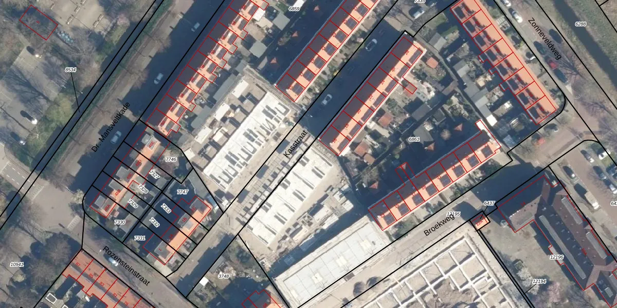 Het perceel waarop Kasstraat 14 staat heeft een oppervlakte van 4970 m². Dit is een zeer groot perceel. De perceeloppervlakte wordt geregistreerd door het Kadaster. Gedetailleerde informatie over de maten van dit perceel kunt u vinden in het rapport Kadastrale kaart met maatvoering van Kasstraat 14.