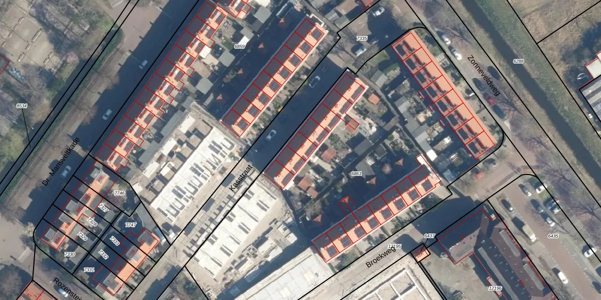 Het perceel waarop Kasstraat 20 staat heeft een oppervlakte van 4970 m². Dit is een zeer groot perceel. De perceeloppervlakte wordt geregistreerd door het Kadaster. Gedetailleerde informatie over de maten van dit perceel kunt u vinden in het rapport Kadastrale kaart met maatvoering van Kasstraat 20.