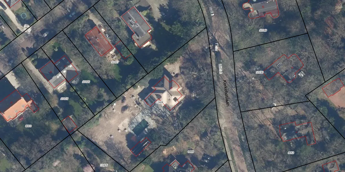 Het perceel waarop Kerkeboslaan 13 staat heeft een oppervlakte van 3019 m². Dit is een zeer groot perceel. De perceeloppervlakte wordt geregistreerd door het Kadaster. Gedetailleerde informatie over de maten van dit perceel kunt u vinden in het rapport Kadastrale kaart met maatvoering van Kerkeboslaan 13.