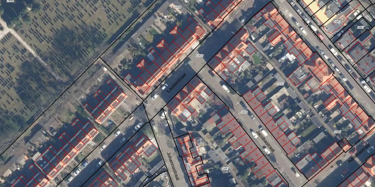 Het perceel waarop Louisestraat 13 staat heeft een oppervlakte van 3070 m². Dit is een zeer groot perceel. De perceeloppervlakte wordt geregistreerd door het Kadaster. Gedetailleerde informatie over de maten van dit perceel kunt u vinden in het rapport Kadastrale kaart met maatvoering van Louisestraat 13.