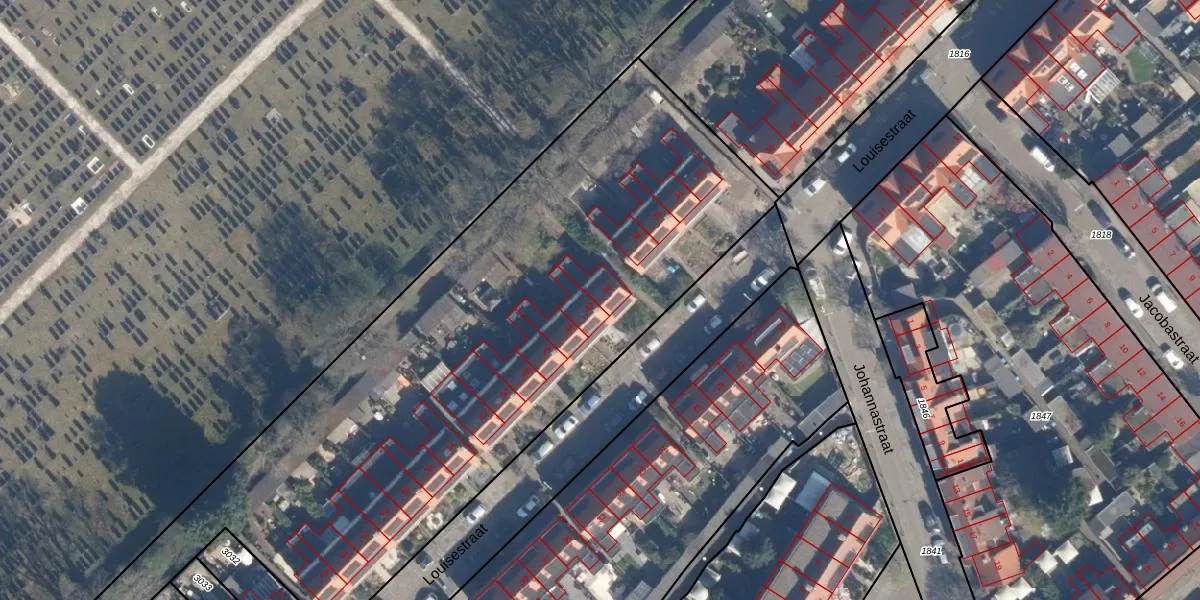 Het perceel waarop Louisestraat 40 staat heeft een oppervlakte van 3756 m². Dit is een zeer groot perceel. De perceeloppervlakte wordt geregistreerd door het Kadaster. Gedetailleerde informatie over de maten van dit perceel kunt u vinden in het rapport Kadastrale kaart met maatvoering van Louisestraat 40.