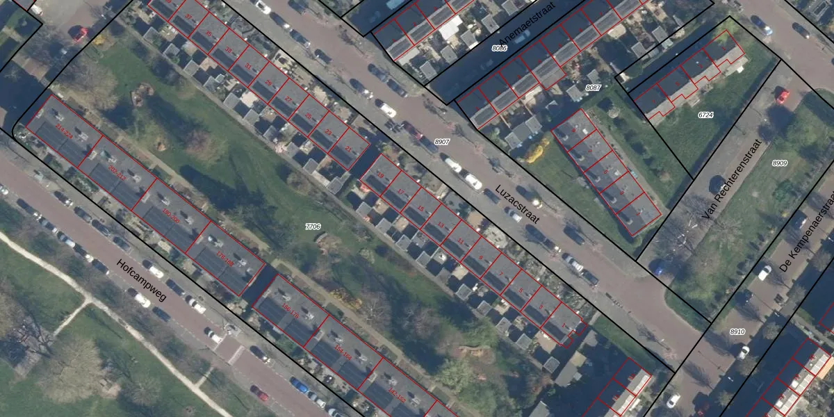 Het perceel waarop Luzacstraat 15 staat heeft een oppervlakte van 8880 m². Dit is een zeer groot perceel. De perceeloppervlakte wordt geregistreerd door het Kadaster. Gedetailleerde informatie over de maten van dit perceel kunt u vinden in het rapport Kadastrale kaart met maatvoering van Luzacstraat 15.