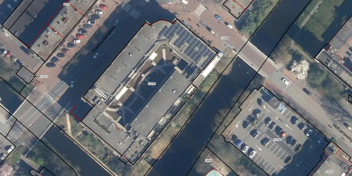 Het perceel waarop Mauritshof 20 staat heeft een oppervlakte van 3468 m². Dit is een zeer groot perceel. De perceeloppervlakte wordt geregistreerd door het Kadaster. Gedetailleerde informatie over de maten van dit perceel kunt u vinden in het rapport Kadastrale kaart met maatvoering van Mauritshof 20.