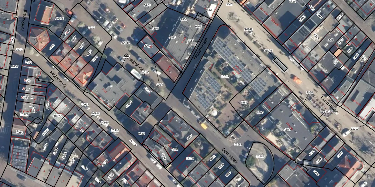 Molenstraat 13 is gelegen op kadastraal perceel WSN01B10245. Deze kadastrale aanduiding is uniek en wordt gebruikt door het Kadaster om eigendomsrechten en andere zakelijke rechten vast te leggen. Het perceel maakt onderdeel uit van de kadastrale gemeente Wassenaar.