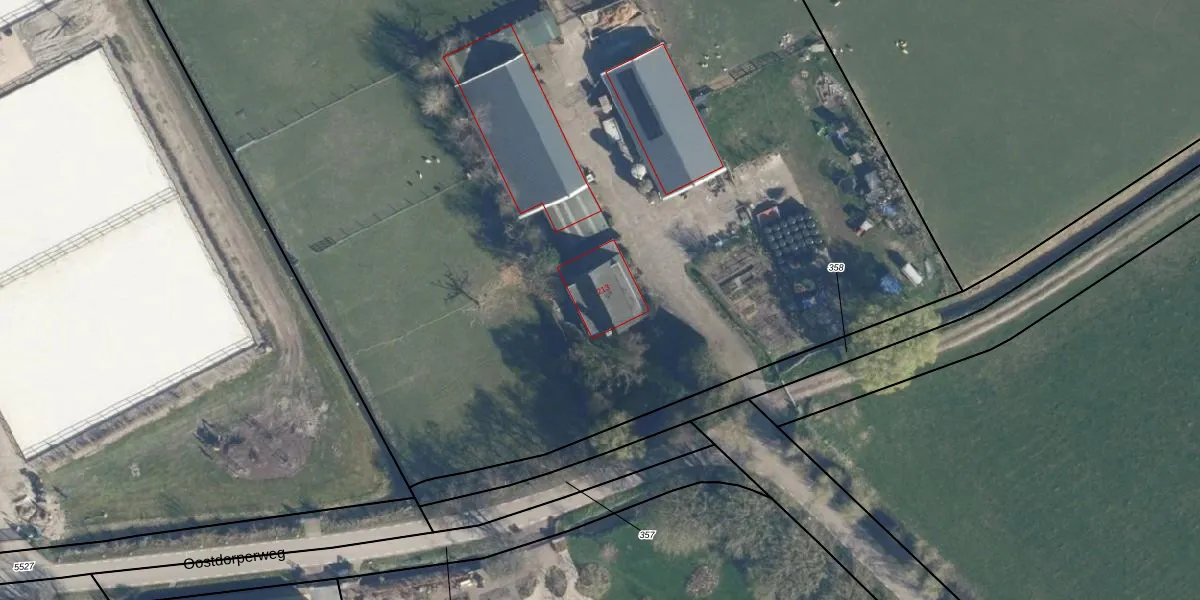 Het perceel waarop Oostdorperweg 213 staat heeft een oppervlakte van 1,3 ha. Dit is een zeer groot perceel. De perceeloppervlakte wordt geregistreerd door het Kadaster. Gedetailleerde informatie over de maten van dit perceel kunt u vinden in het rapport Kadastrale kaart met maatvoering van Oostdorperweg 213.