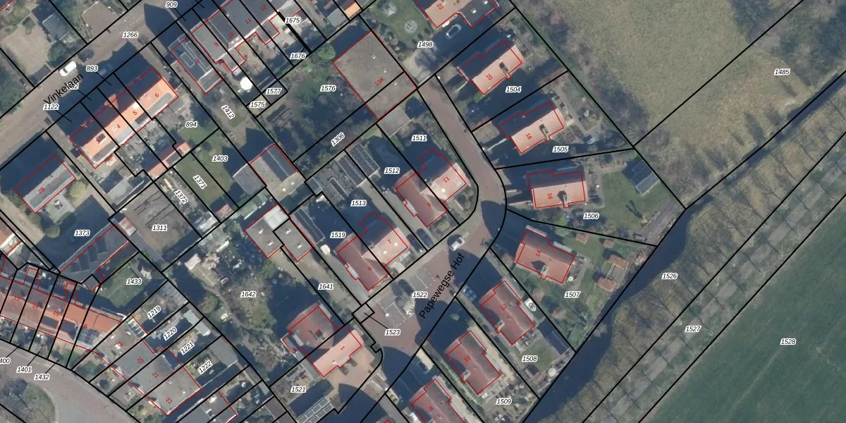 Het perceel waarop Papewegse Hof 9 staat heeft een oppervlakte van 305 m². Dit is een groot perceel. De perceeloppervlakte wordt geregistreerd door het Kadaster. Gedetailleerde informatie over de maten van dit perceel kunt u vinden in het rapport Kadastrale kaart met maatvoering van Papewegse Hof 9.