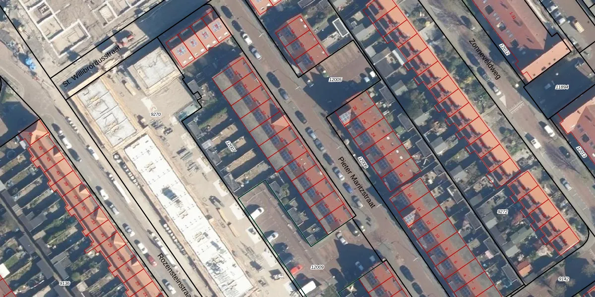 Het perceel waarop Pieter Maritzstraat 21 staat heeft een oppervlakte van 2114 m². Dit is een zeer groot perceel. De perceeloppervlakte wordt geregistreerd door het Kadaster. Gedetailleerde informatie over de maten van dit perceel kunt u vinden in het rapport Kadastrale kaart met maatvoering van Pieter Maritzstraat 21.