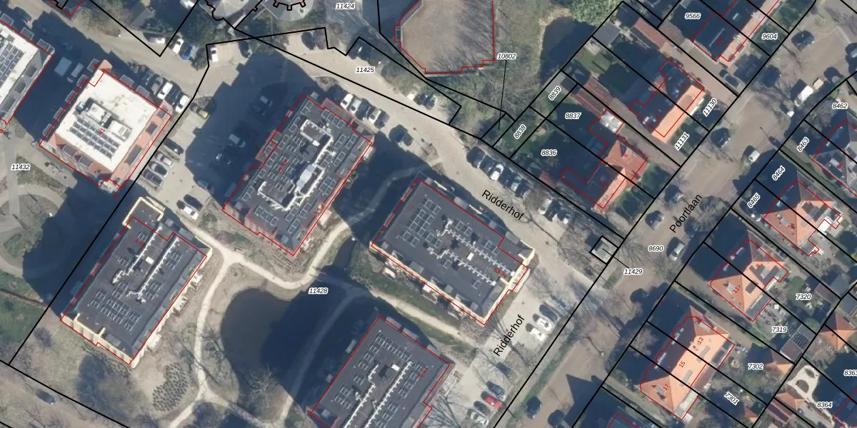 Het perceel waarop Ridderhof 60 staat heeft een oppervlakte van 9197 m². Dit is een zeer groot perceel. De perceeloppervlakte wordt geregistreerd door het Kadaster. Gedetailleerde informatie over de maten van dit perceel kunt u vinden in het rapport Kadastrale kaart met maatvoering van Ridderhof 60.