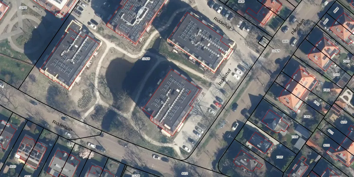 Het perceel waarop Ridderhof 78 staat heeft een oppervlakte van 9197 m². Dit is een zeer groot perceel. De perceeloppervlakte wordt geregistreerd door het Kadaster. Gedetailleerde informatie over de maten van dit perceel kunt u vinden in het rapport Kadastrale kaart met maatvoering van Ridderhof 78.