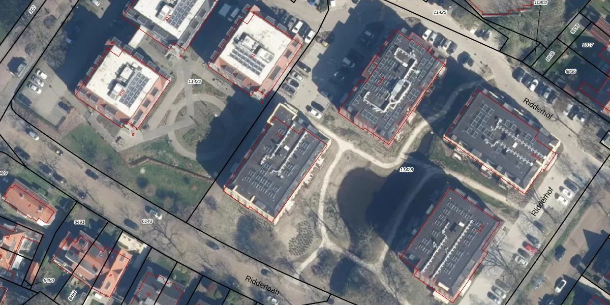 Ridderhof 8 is gelegen op kadastraal perceel WSN01F11428. Deze kadastrale aanduiding is uniek en wordt gebruikt door het Kadaster om eigendomsrechten en andere zakelijke rechten vast te leggen. Het perceel maakt onderdeel uit van de kadastrale gemeente Wassenaar.