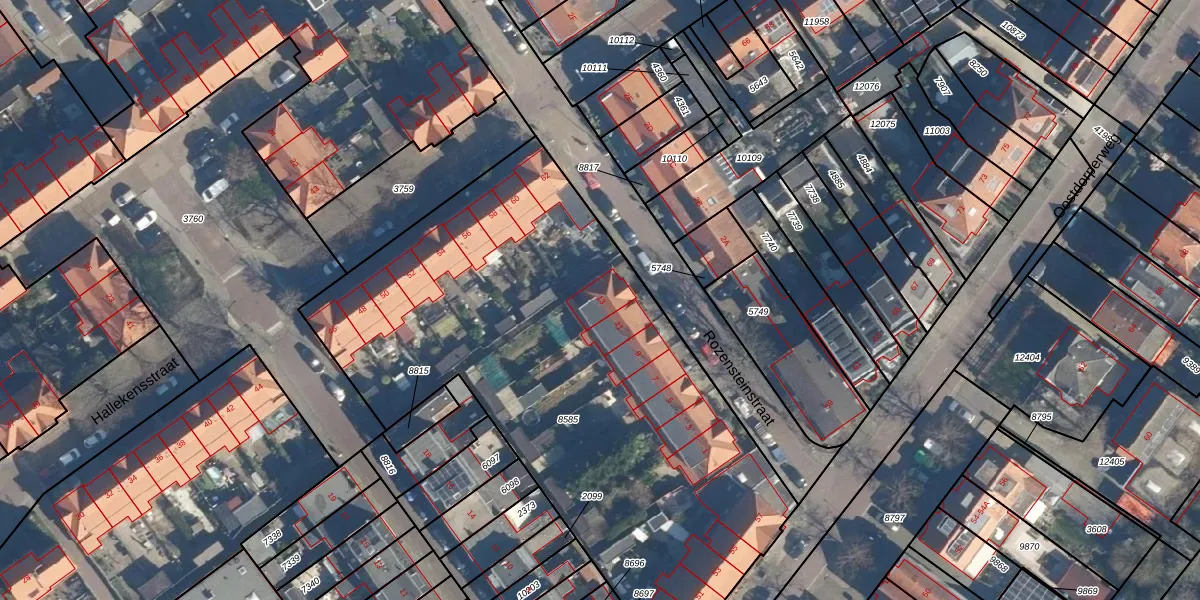 Het perceel waarop Rozensteinstraat 13 staat heeft een oppervlakte van 3104 m². Dit is een zeer groot perceel. De perceeloppervlakte wordt geregistreerd door het Kadaster. Gedetailleerde informatie over de maten van dit perceel kunt u vinden in het rapport Kadastrale kaart met maatvoering van Rozensteinstraat 13.