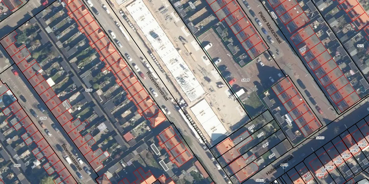 Het perceel waarop Rozensteinstraat 20 staat heeft een oppervlakte van 3431 m². Dit is een zeer groot perceel. De perceeloppervlakte wordt geregistreerd door het Kadaster. Gedetailleerde informatie over de maten van dit perceel kunt u vinden in het rapport Kadastrale kaart met maatvoering van Rozensteinstraat 20.