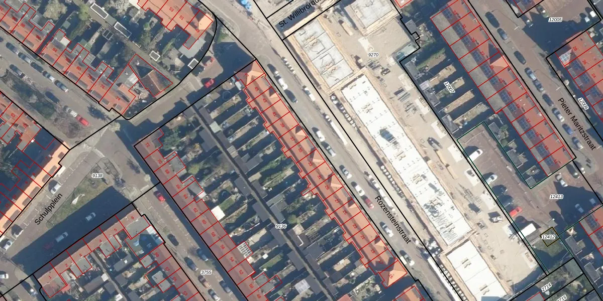 Het perceel waarop Rozensteinstraat 35 staat heeft een oppervlakte van 6518 m². Dit is een zeer groot perceel. De perceeloppervlakte wordt geregistreerd door het Kadaster. Gedetailleerde informatie over de maten van dit perceel kunt u vinden in het rapport Kadastrale kaart met maatvoering van Rozensteinstraat 35.