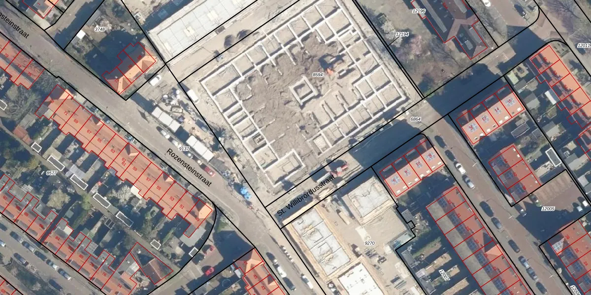 Het perceel waarop Rozensteinstraat 54 staat heeft een oppervlakte van 3297 m². Dit is een zeer groot perceel. De perceeloppervlakte wordt geregistreerd door het Kadaster. Gedetailleerde informatie over de maten van dit perceel kunt u vinden in het rapport Kadastrale kaart met maatvoering van Rozensteinstraat 54.