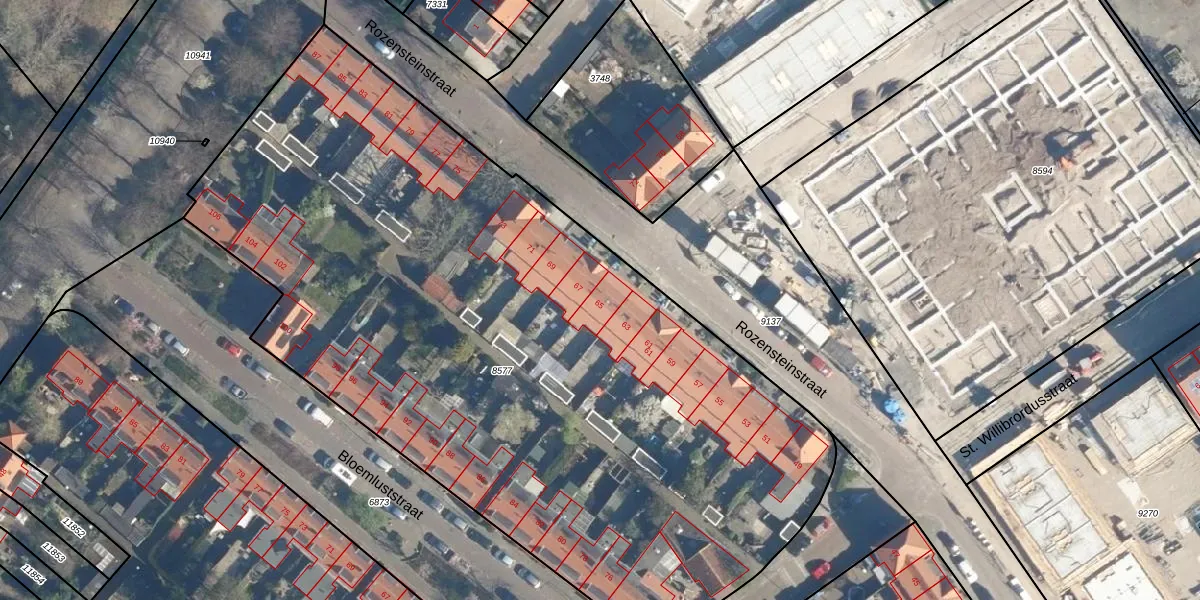 Het perceel waarop Rozensteinstraat 65 staat heeft een oppervlakte van 5155 m². Dit is een zeer groot perceel. De perceeloppervlakte wordt geregistreerd door het Kadaster. Gedetailleerde informatie over de maten van dit perceel kunt u vinden in het rapport Kadastrale kaart met maatvoering van Rozensteinstraat 65.