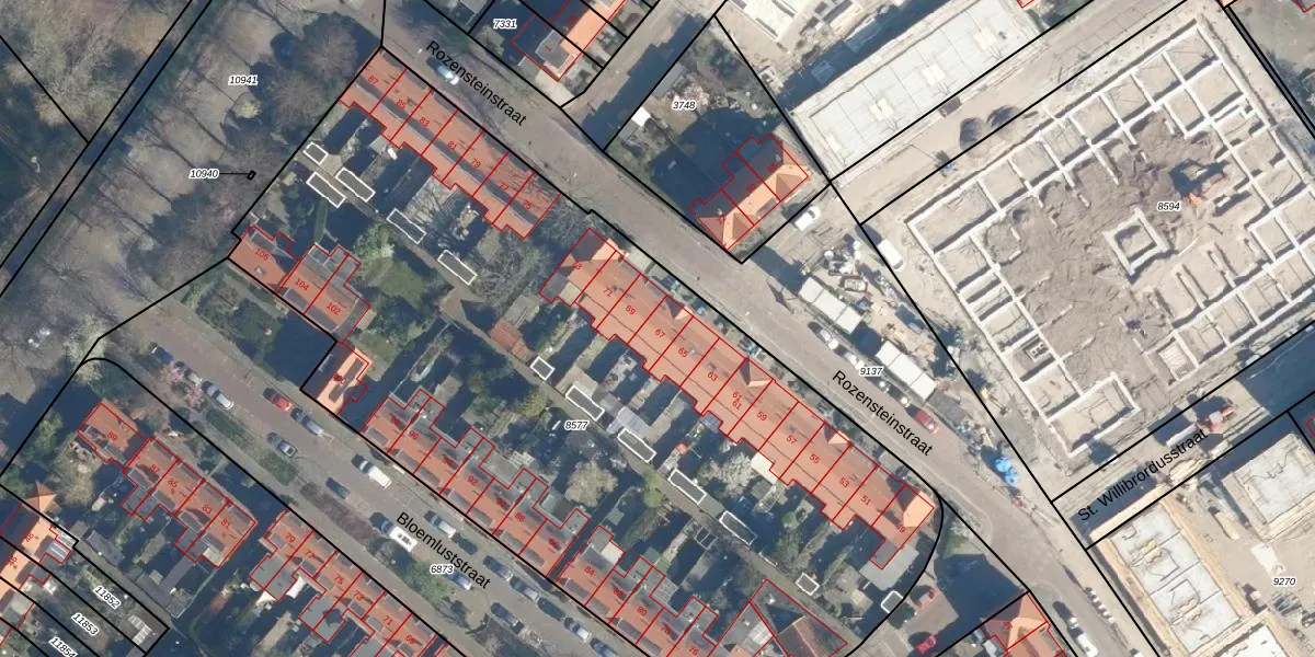 Het perceel waarop Rozensteinstraat 67 staat heeft een oppervlakte van 5155 m². Dit is een zeer groot perceel. De perceeloppervlakte wordt geregistreerd door het Kadaster. Gedetailleerde informatie over de maten van dit perceel kunt u vinden in het rapport Kadastrale kaart met maatvoering van Rozensteinstraat 67.