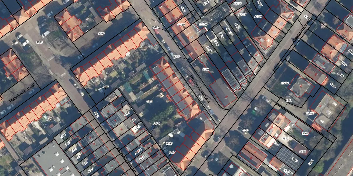 Het perceel waarop Rozensteinstraat 7 staat heeft een oppervlakte van 3104 m². Dit is een zeer groot perceel. De perceeloppervlakte wordt geregistreerd door het Kadaster. Gedetailleerde informatie over de maten van dit perceel kunt u vinden in het rapport Kadastrale kaart met maatvoering van Rozensteinstraat 7.