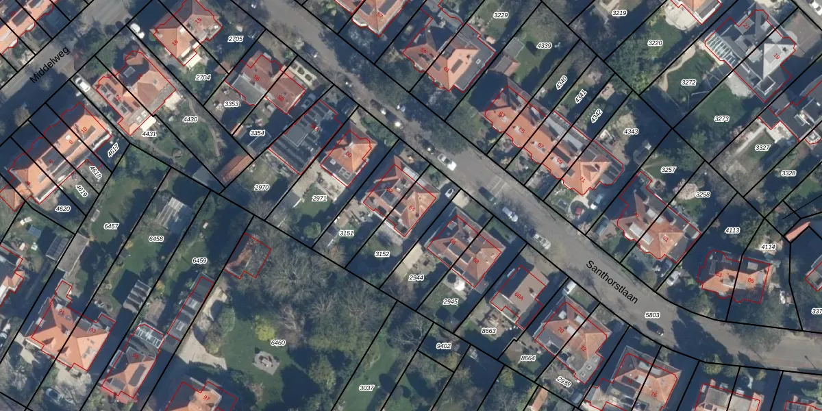 Gebruik de zoekbalk of klik op een perceel voor informatie over de adressen binnen dit perceel.