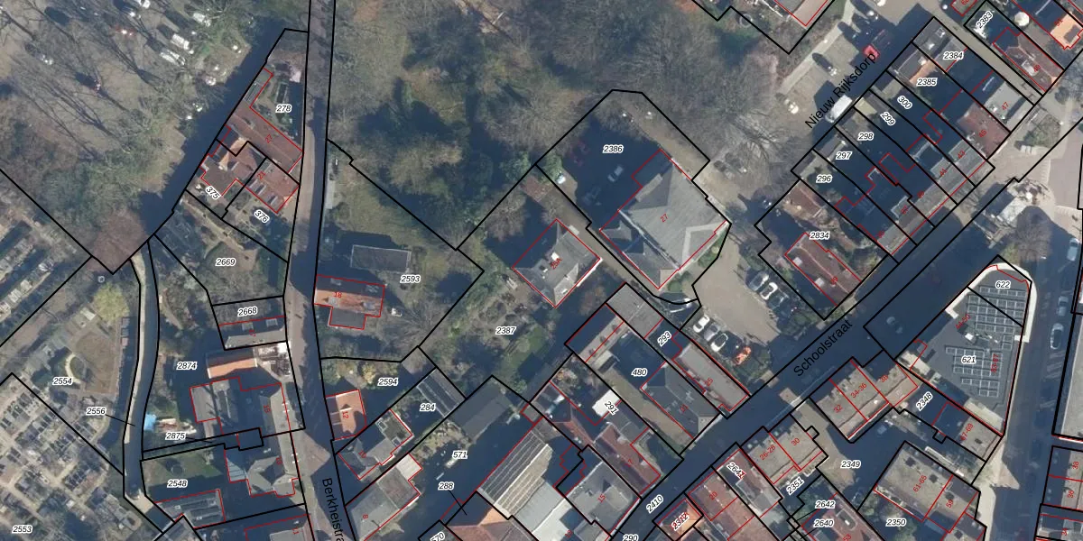Schoolstraat 25-A is gelegen op kadastraal perceel WSN01H2387. Deze kadastrale aanduiding is uniek en wordt gebruikt door het Kadaster om eigendomsrechten en andere zakelijke rechten vast te leggen. Het perceel maakt onderdeel uit van de kadastrale gemeente Wassenaar.