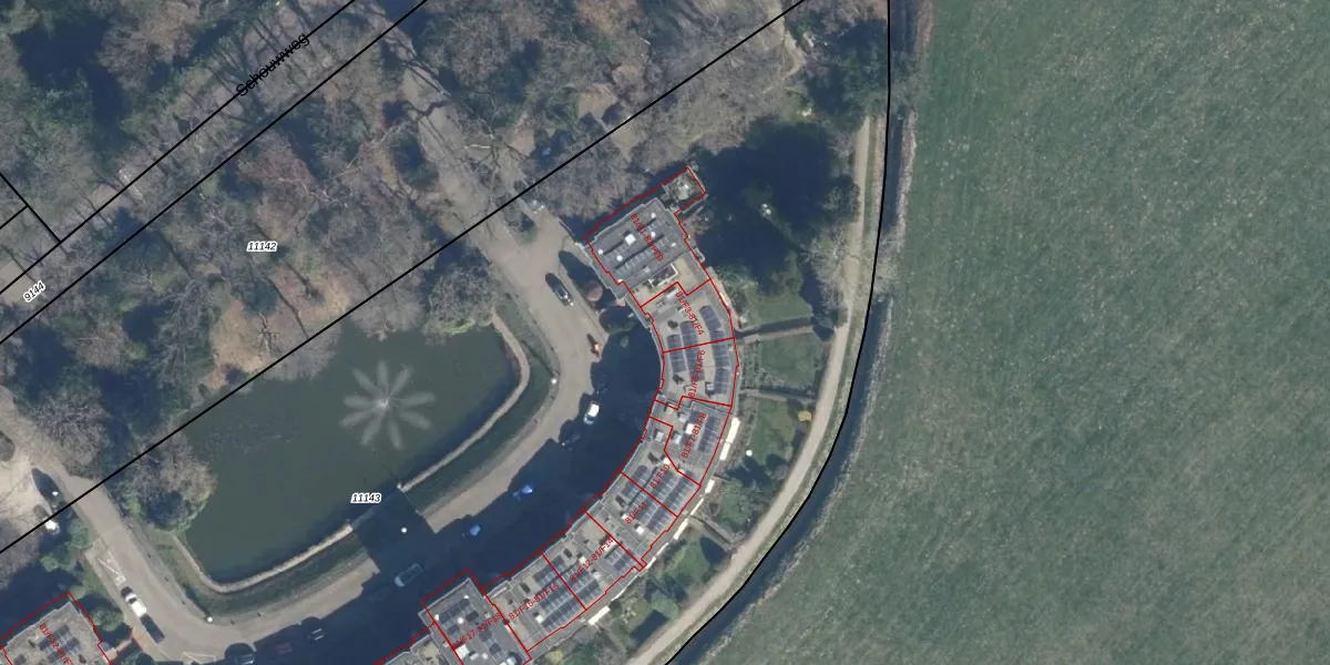 Het perceel waarop Schouwweg 81-F4 staat heeft een oppervlakte van 1,1 ha. Dit is een zeer groot perceel. De perceeloppervlakte wordt geregistreerd door het Kadaster. Gedetailleerde informatie over de maten van dit perceel kunt u vinden in het rapport Kadastrale kaart met maatvoering van Schouwweg 81-F4.
