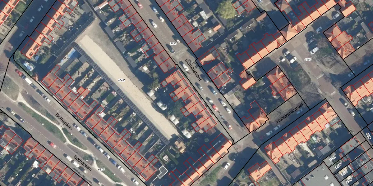Het perceel waarop Schulpstraat 9 staat heeft een oppervlakte van 7217 m². Dit is een zeer groot perceel. De perceeloppervlakte wordt geregistreerd door het Kadaster. Gedetailleerde informatie over de maten van dit perceel kunt u vinden in het rapport Kadastrale kaart met maatvoering van Schulpstraat 9.