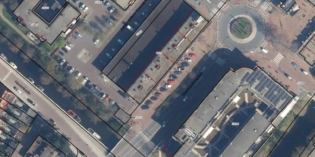 Stadhoudersplein 13 is gelegen op kadastraal perceel WSN01B6824. Deze kadastrale aanduiding is uniek en wordt gebruikt door het Kadaster om eigendomsrechten en andere zakelijke rechten vast te leggen. Het perceel maakt onderdeel uit van de kadastrale gemeente Wassenaar.