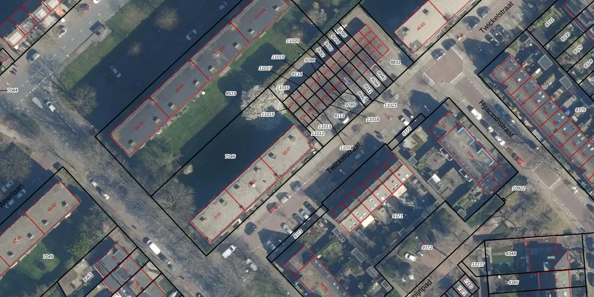 Twickelstraat 43 is gelegen op kadastraal perceel WSN01B7046. Deze kadastrale aanduiding is uniek en wordt gebruikt door het Kadaster om eigendomsrechten en andere zakelijke rechten vast te leggen. Het perceel maakt onderdeel uit van de kadastrale gemeente Wassenaar.