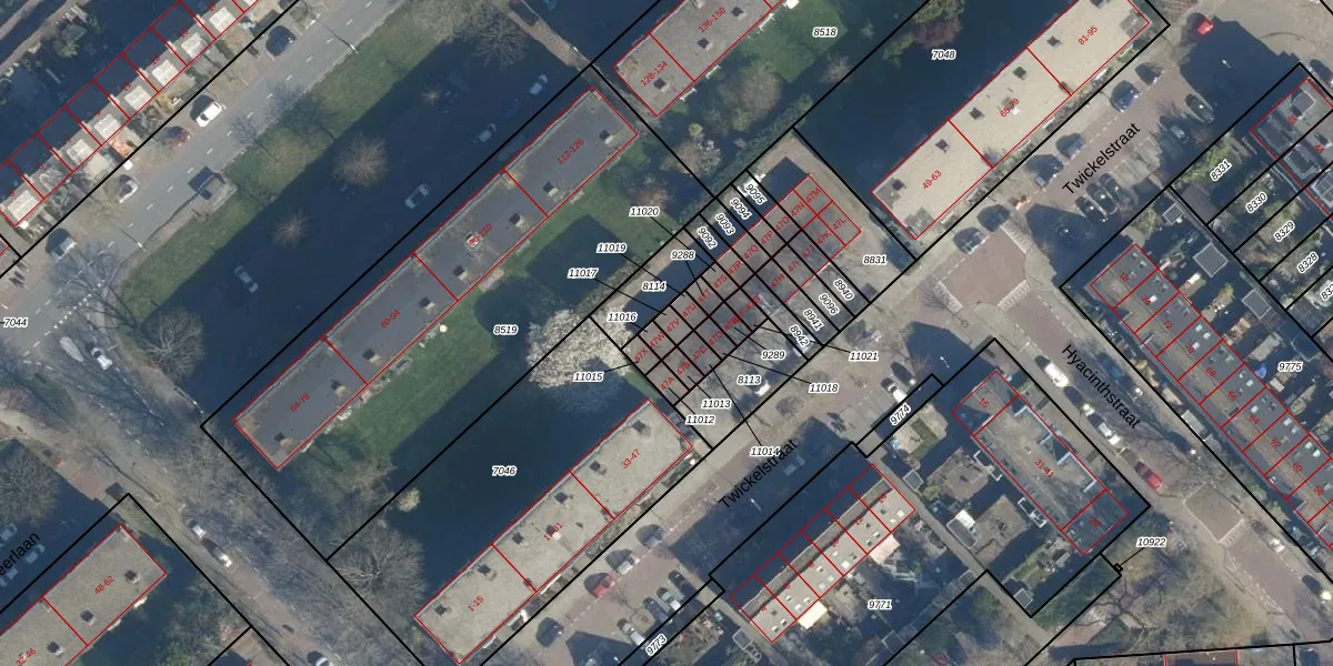 Het perceel waarop Twickelstraat 47-V staat heeft een oppervlakte van 18 m². Dit is een klein perceel. De perceeloppervlakte wordt geregistreerd door het Kadaster. Gedetailleerde informatie over de maten van dit perceel kunt u vinden in het rapport Kadastrale kaart met maatvoering van Twickelstraat 47-V.