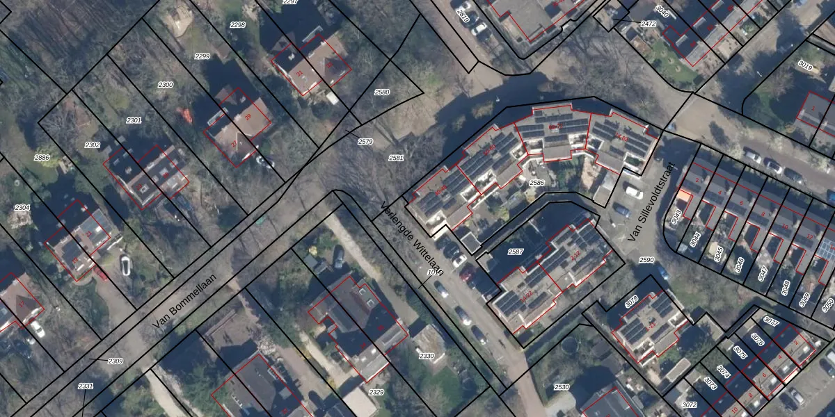 Het perceel waarop Van Bommellaan 40 staat heeft een oppervlakte van 1233 m². Dit is een zeer groot perceel. De perceeloppervlakte wordt geregistreerd door het Kadaster. Gedetailleerde informatie over de maten van dit perceel kunt u vinden in het rapport Kadastrale kaart met maatvoering van Van Bommellaan 40.