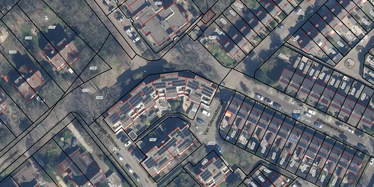 Het perceel waarop Van Bommellaan 76 staat heeft een oppervlakte van 1233 m². Dit is een zeer groot perceel. De perceeloppervlakte wordt geregistreerd door het Kadaster. Gedetailleerde informatie over de maten van dit perceel kunt u vinden in het rapport Kadastrale kaart met maatvoering van Van Bommellaan 76.
