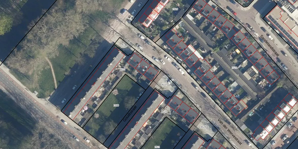 Het perceel waarop Van der Wervestraat 13 staat heeft een oppervlakte van 1398 m². Dit is een zeer groot perceel. De perceeloppervlakte wordt geregistreerd door het Kadaster. Gedetailleerde informatie over de maten van dit perceel kunt u vinden in het rapport Kadastrale kaart met maatvoering van Van der Wervestraat 13.