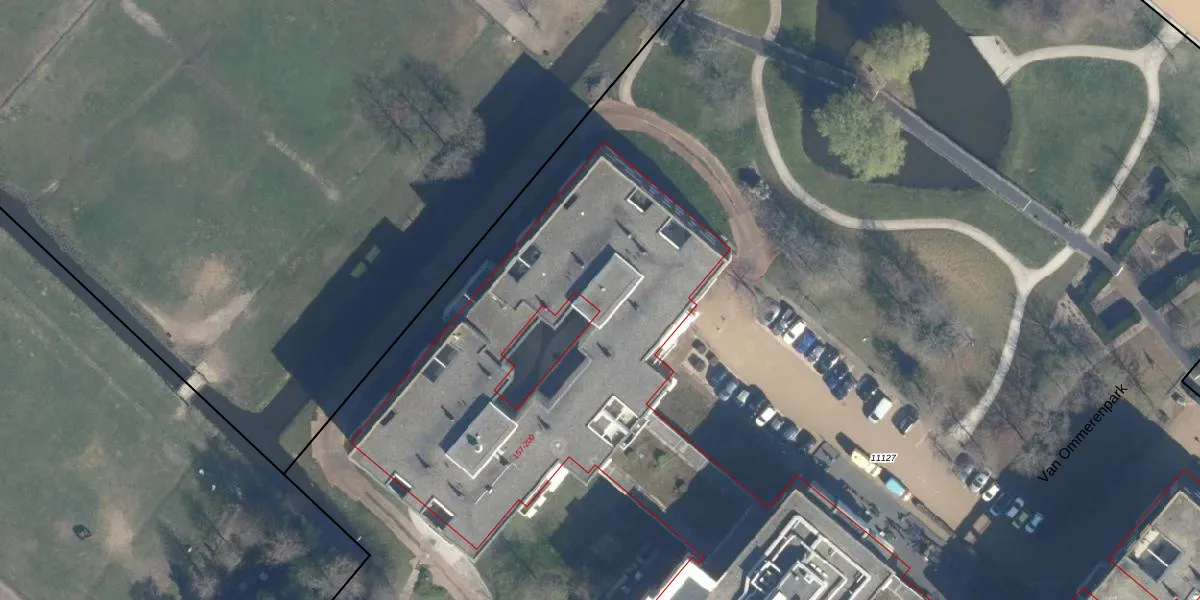 Het perceel waarop Van Ommerenpark 175 staat heeft een oppervlakte van 2,5 ha. Dit is een zeer groot perceel. De perceeloppervlakte wordt geregistreerd door het Kadaster. Gedetailleerde informatie over de maten van dit perceel kunt u vinden in het rapport Kadastrale kaart met maatvoering van Van Ommerenpark 175.
