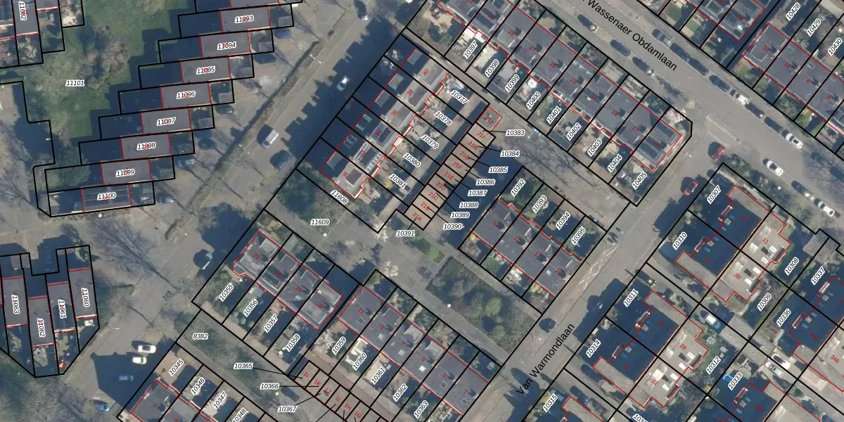 Gebruik de zoekbalk of klik op een perceel voor informatie over de adressen binnen dit perceel.