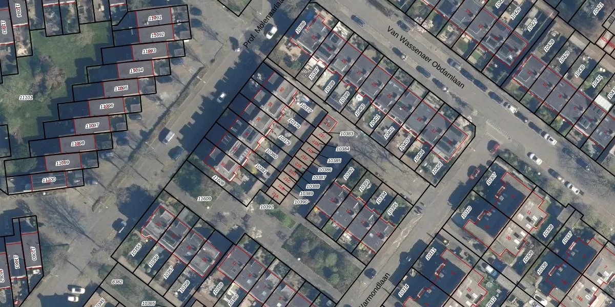 Gebruik de zoekbalk of klik op een perceel voor informatie over de adressen binnen dit perceel.
