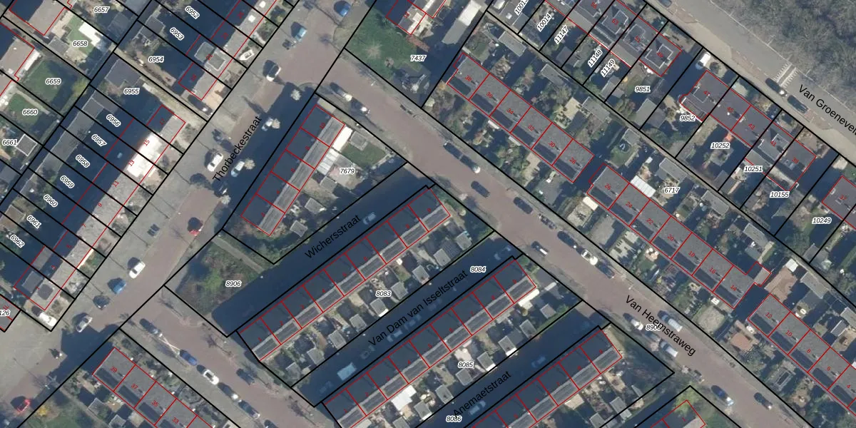 Het perceel waarop Wichersstraat 9 staat heeft een oppervlakte van 1023 m². Dit is een zeer groot perceel. De perceeloppervlakte wordt geregistreerd door het Kadaster. Gedetailleerde informatie over de maten van dit perceel kunt u vinden in het rapport Kadastrale kaart met maatvoering van Wichersstraat 9.