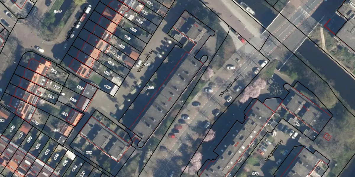 Wiegmanweg 43 is gelegen op kadastraal perceel WSN01B9202. Deze kadastrale aanduiding is uniek en wordt gebruikt door het Kadaster om eigendomsrechten en andere zakelijke rechten vast te leggen. Het perceel maakt onderdeel uit van de kadastrale gemeente Wassenaar.
