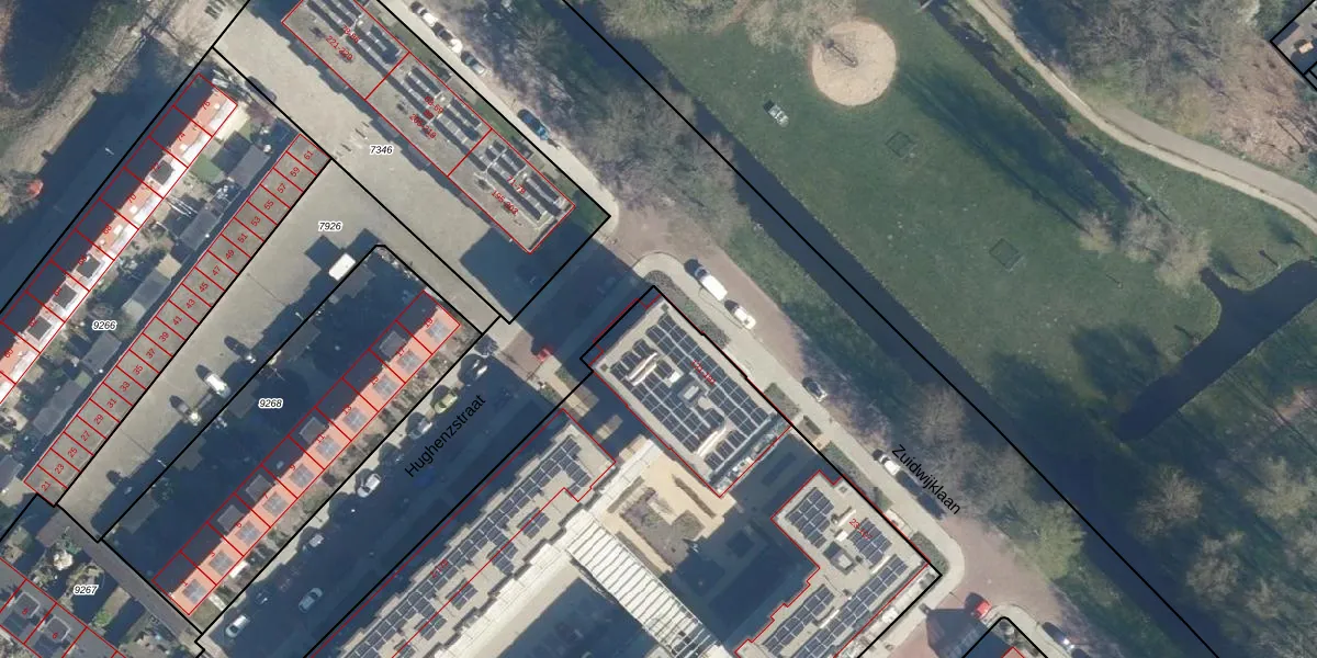 Het perceel waarop Zuidwijklaan 155 staat heeft een oppervlakte van 6150 m². Dit is een zeer groot perceel. De perceeloppervlakte wordt geregistreerd door het Kadaster. Gedetailleerde informatie over de maten van dit perceel kunt u vinden in het rapport Kadastrale kaart met maatvoering van Zuidwijklaan 155.