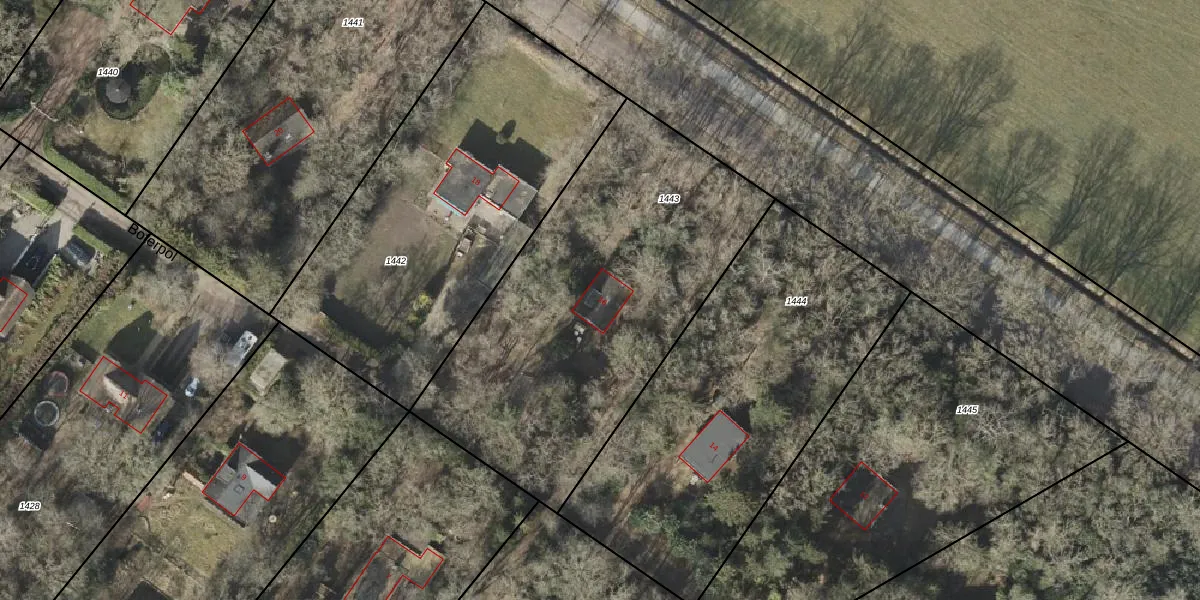 Het perceel waarop Boterpol 16 staat heeft een oppervlakte van 1916 m². Dit is een zeer groot perceel. De perceeloppervlakte wordt geregistreerd door het Kadaster. Gedetailleerde informatie over de maten van dit perceel kunt u vinden in het rapport Kadastrale kaart met maatvoering van Boterpol 16.