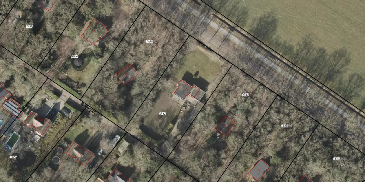 Het perceel waarop Boterpol 18 staat heeft een oppervlakte van 1814 m². Dit is een zeer groot perceel. De perceeloppervlakte wordt geregistreerd door het Kadaster. Gedetailleerde informatie over de maten van dit perceel kunt u vinden in het rapport Kadastrale kaart met maatvoering van Boterpol 18.